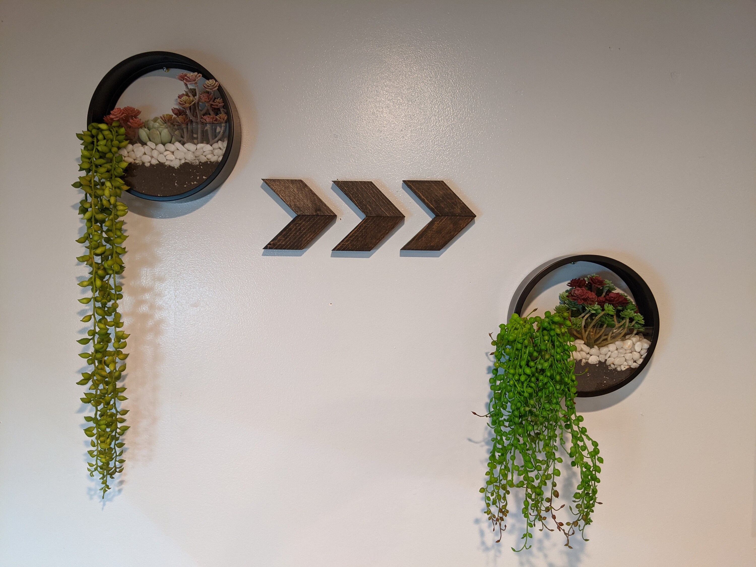 These look amazing and more realistic than I expected. I was gifted some wall planters but they did not have any drainage holes and wouldn't get enough light where I wanted to put them, so I didn't want to put any of my real succulents in there. This was a perfect solution and I love the way they turned out :)